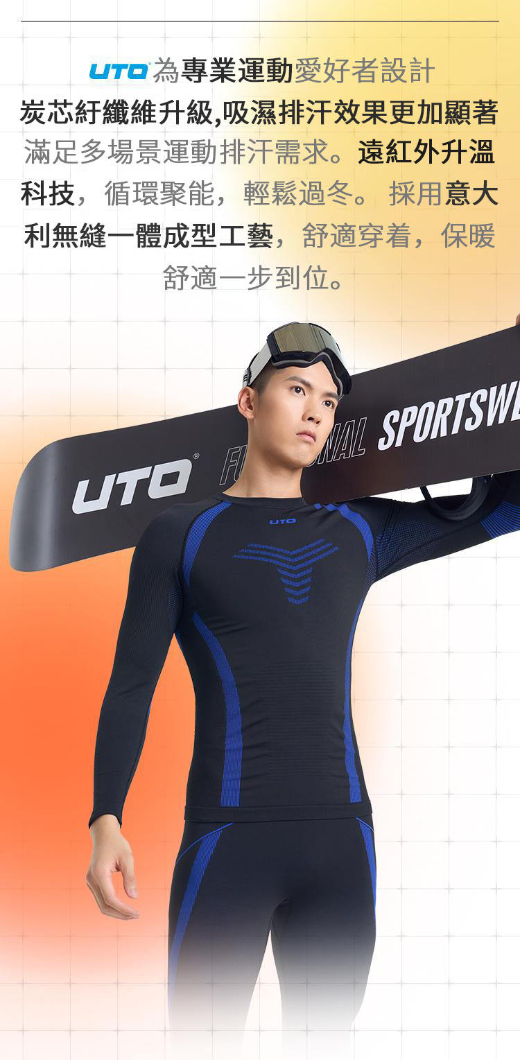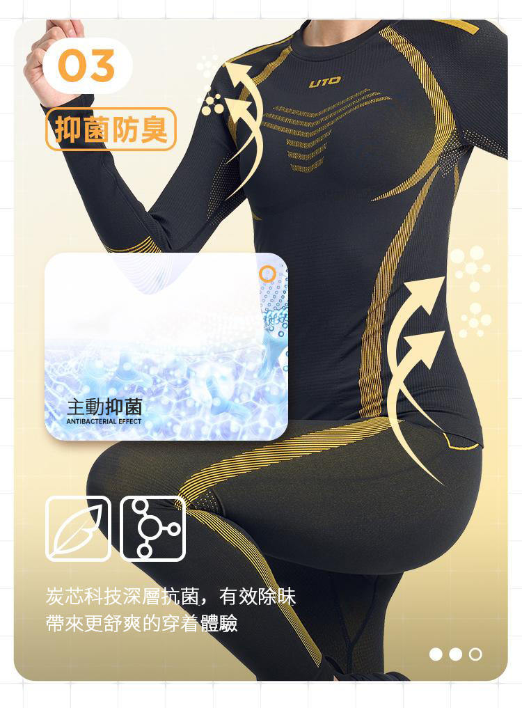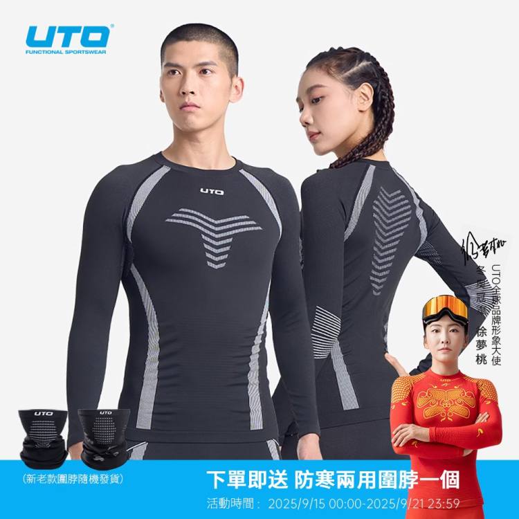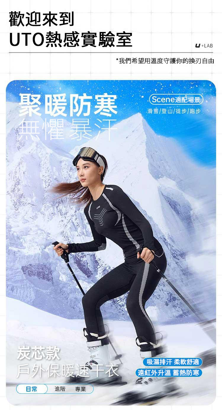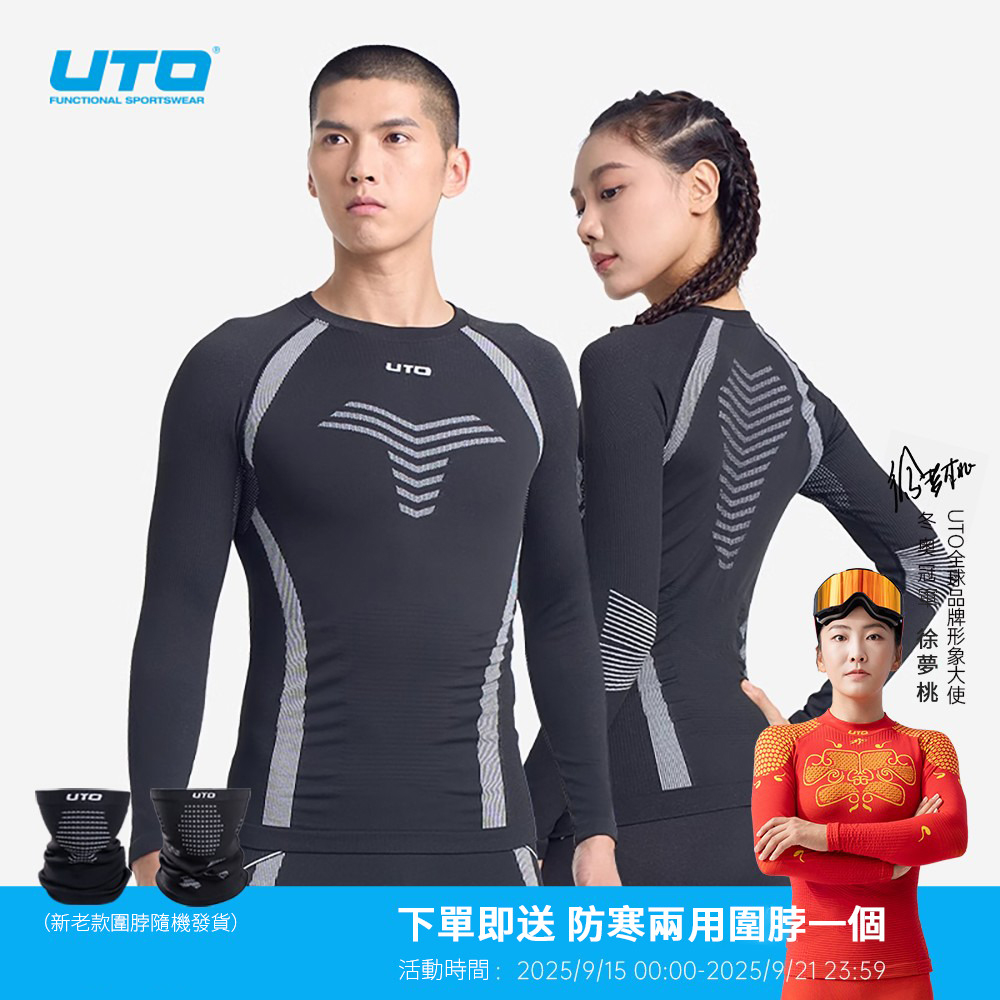 UTO/悠途炭芯戶外保暖速乾功能內衣男女彈性早秋跑步運動套裝