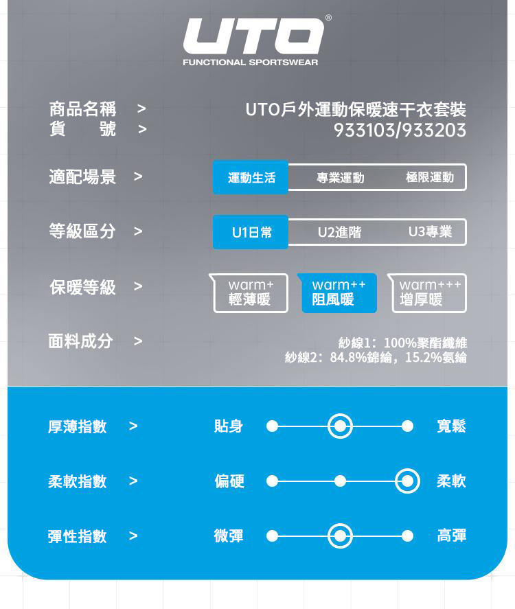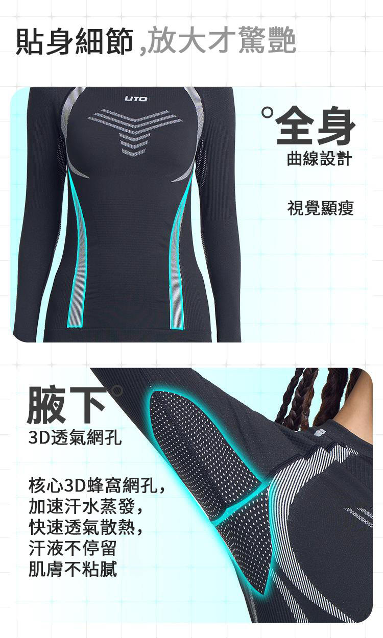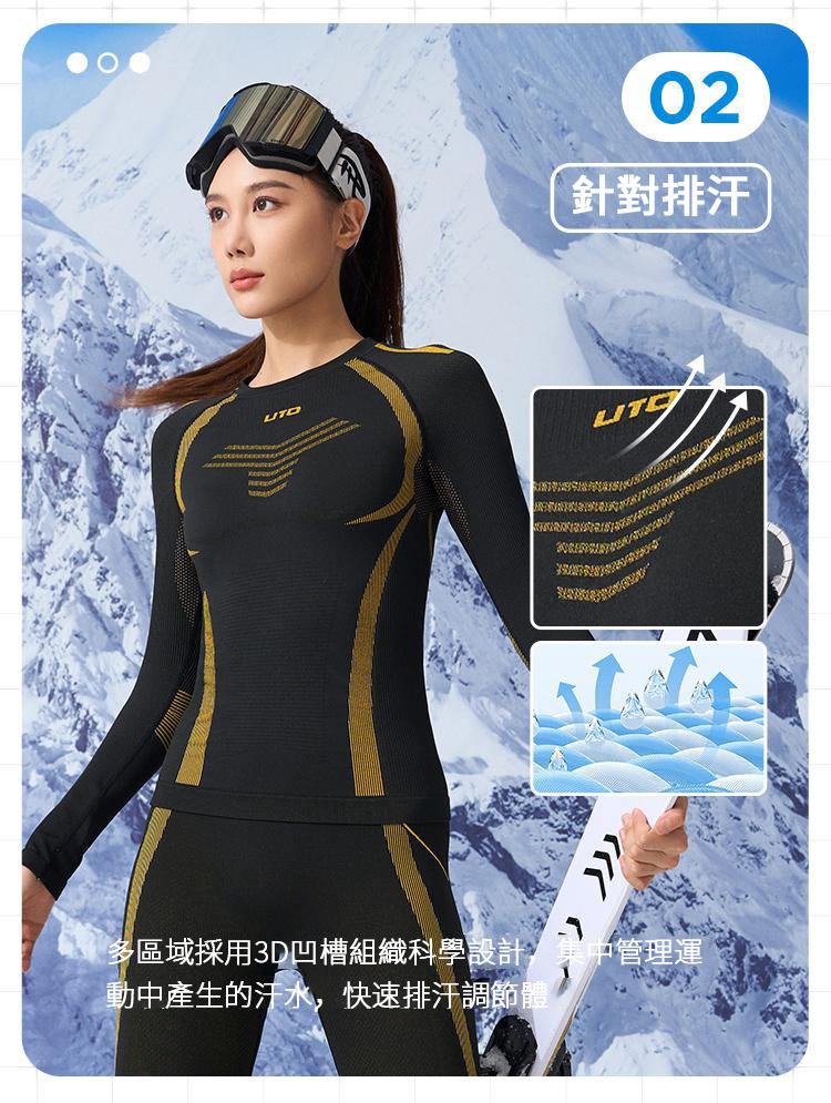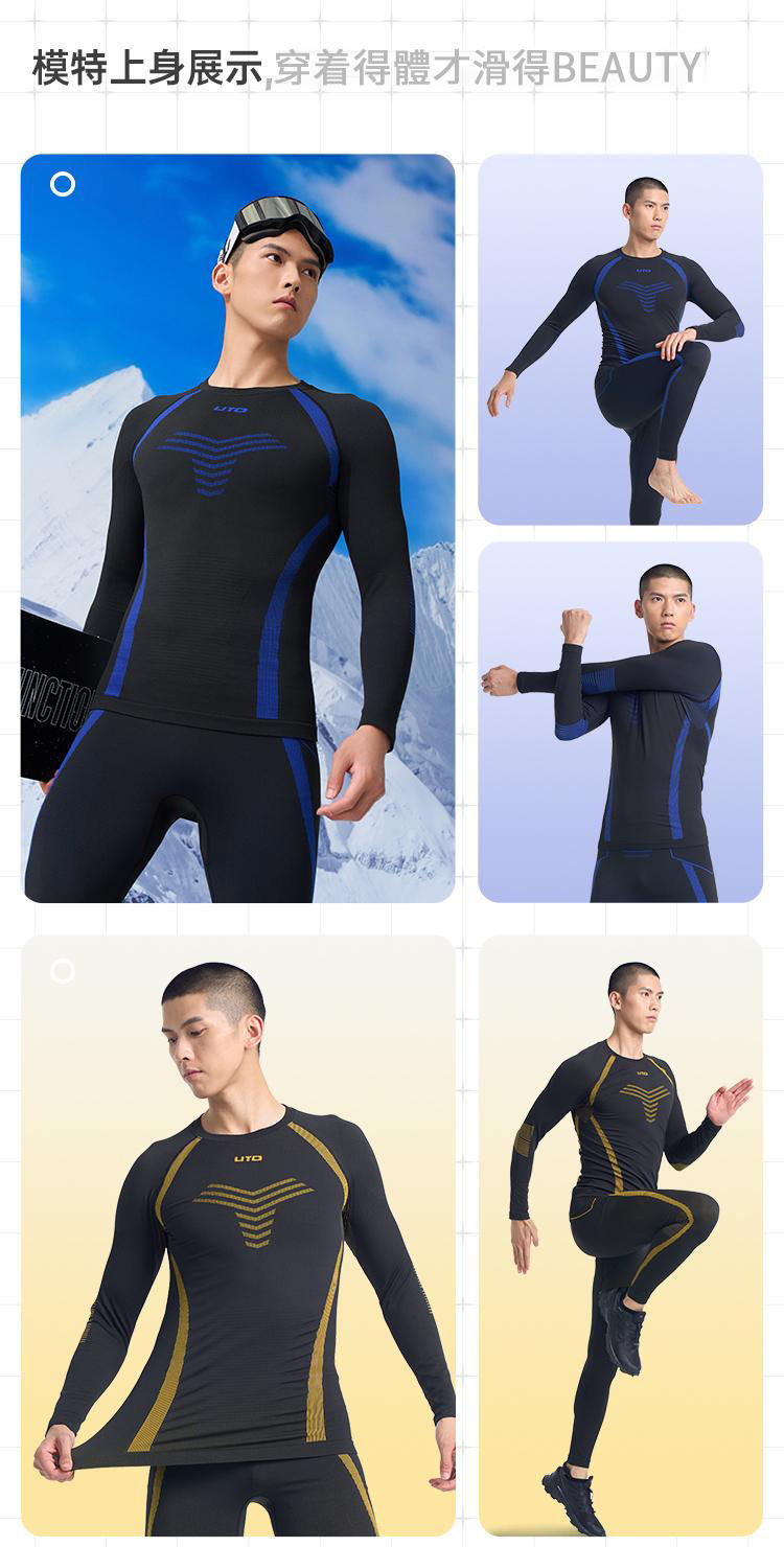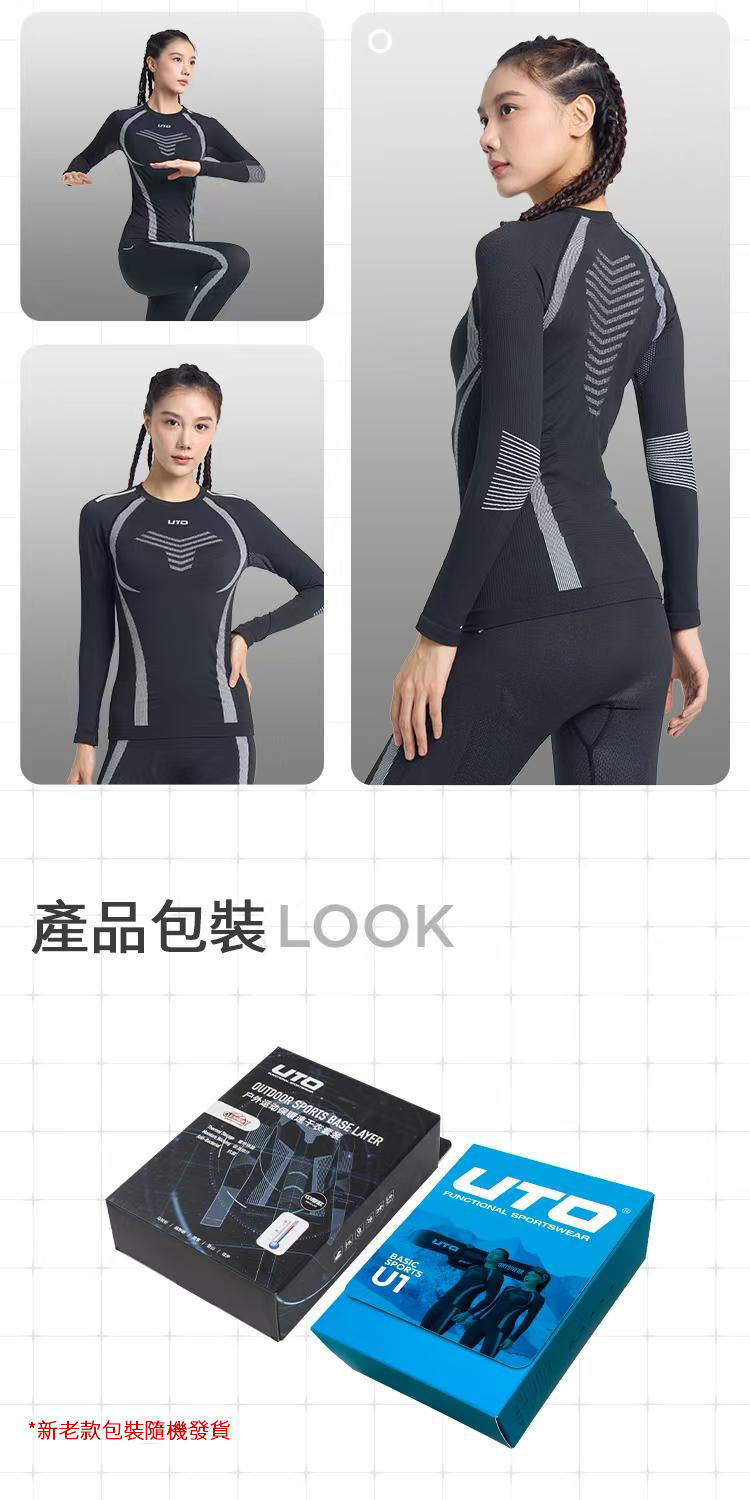 UTO/悠途炭芯戶外保暖速乾功能內衣男女彈性早秋跑步運動套裝